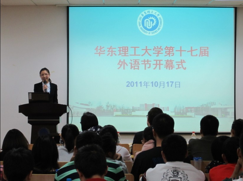 10月17日晚,华东理工大学第17届外语节开幕式暨外教系列讲座在大活321举行。本次外语节以“建华理优良学风,创外院语言氛围”为主题,旨在全面加强学风建设,丰富学生第二课堂,营造浓郁的外语语言学习氛围,通过开展外语配音、歌曲、短剧、演讲比赛等活动,激发学生外语学习的兴趣,培养学生的外语实际运用能力,提高大学生的综合素质和竞争能力。ylzzcom永利总站线路检测副院长颜静兰、党总支副书记张攀、上海中学外教Ryan Carter以及各年级辅导员等领导和嘉宾出席了本次活动。