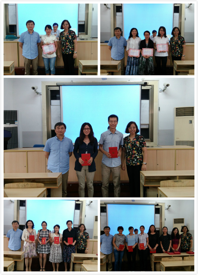 会上,常务副院长余毓国宣读了2015年中青年教师课堂教学竞赛的获奖名单,学院分管专业本科教学、公共外语教学副院长颜静兰、陆伟忠老师为获奖教师颁发了证书。