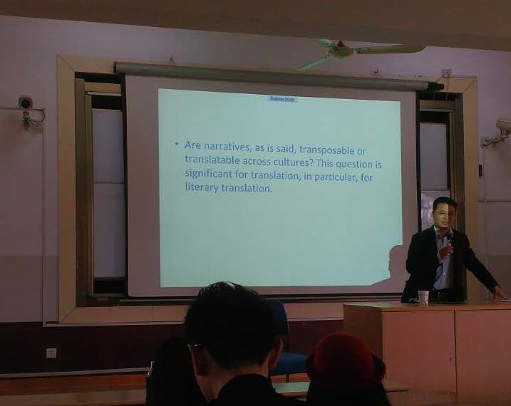 4月8日下午,北京第二ylzzcom永利总站线路检测英语学院院长武光军教授应永利官网ylzzcom永利总站线路检测的邀请,在徐汇校区六教301室作了题为“中国当代小说英译中的叙事调适:以葛浩文英译《河岸》为例”的学术讲座。ylzzcom永利总站线路检测全体研究生及部分教师聆听了讲座。