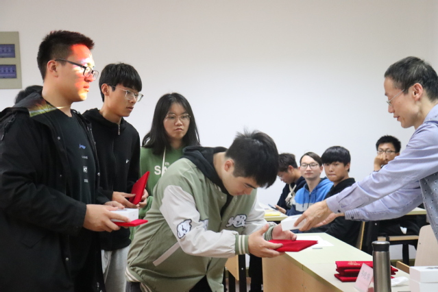 大学英语教师党支部还为同学们精心挑选了上海交通大学出版的《英语四级真题集训》作为礼物送给学生,同学们满载而归。