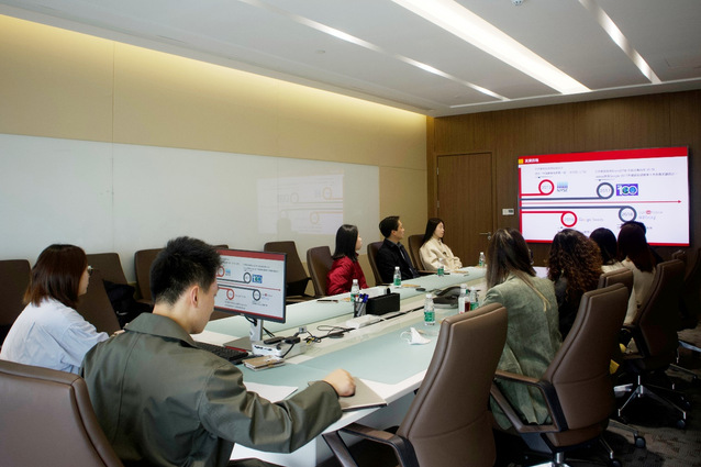 3月21日上午,樊俊、侯月等师生12人一同前往上市公司、化妆品在线销售独角兽企业,上海丽人丽妆化妆品股份有限公司走访调研。公司董事长兼总经理黄梅、人力资源总监谷浩远、公关总监曹志敏等接待并介绍了企业文化、发展愿景、人才需求、岗位要求等。师生一行参观了公司办公场所,现场体验试用了公司新开发的化妆品。随后,公司运营总监、人力资源总监等企业高管组织10名日语专业和英语专业的同学开展了无领导小组讨论。根据现场表现,2位同学获得了公司管理培训生录用函。