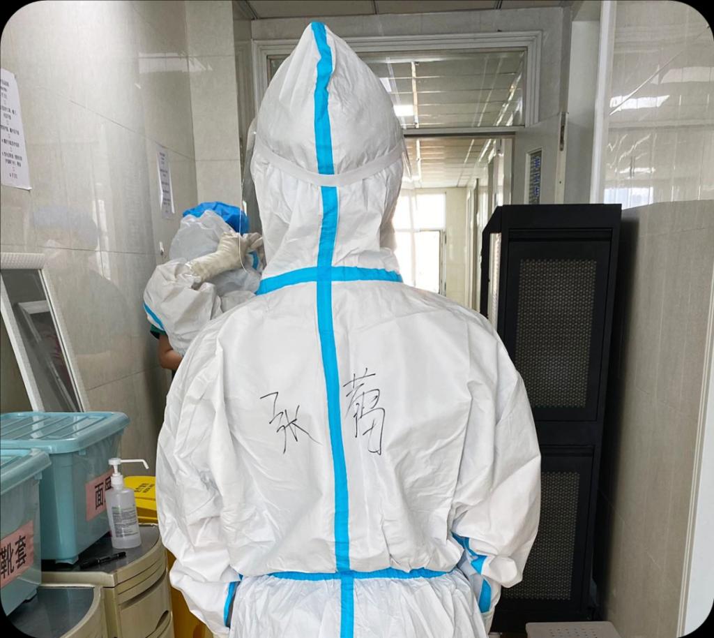 张蕾作为支援梯队队长,两年前也曾支援过定点医院。面对此次变异的传染性极强的奥密克戎毒株,她鼓励大家,我们的身份是抗疫一线的医务工作者,穿上防护服后,就要做好自己的角色,要给患者信心与希望,让他们不再畏惧病魔,早日恢复健康。每天早晨,张蕾总是早早进入病区,掌握每一名新入患者的病情,以及病重患者的病情变化,与科室成员沟通,详细制定每一位患者的治疗方案。