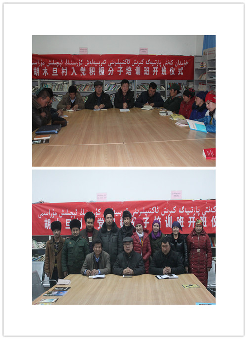 村里这么多的年轻人想入党,宣传和讲解党的知识就显得尤为重要。这不,今年1月5日村委会和工作队联合党支部就举办了“入党积极分子培训班”。驻村工作队队长曹忠明、副队长纳毕江·玛贺穆德和村支部书记图尔逊托合提·麦麦提等每人都上了一堂精彩的党课。参加培训年轻人积极性可高了,原定的14名学员到了第二天讲课的时候变成了16名,有2个“小年轻”带着本子和笔早早就坐进教室里。