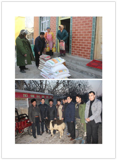 1月15日,在中华民族传统节日春节即将来临之际,beat365在线唯一官网驻芒来乡达汗村工作队和村两委的同志们一道,共同走访、慰问了村里的四老人员、贫困户,为他们送去了大米、面粉、清油、煤以及羊肉等物品,并致以节日的祝福。