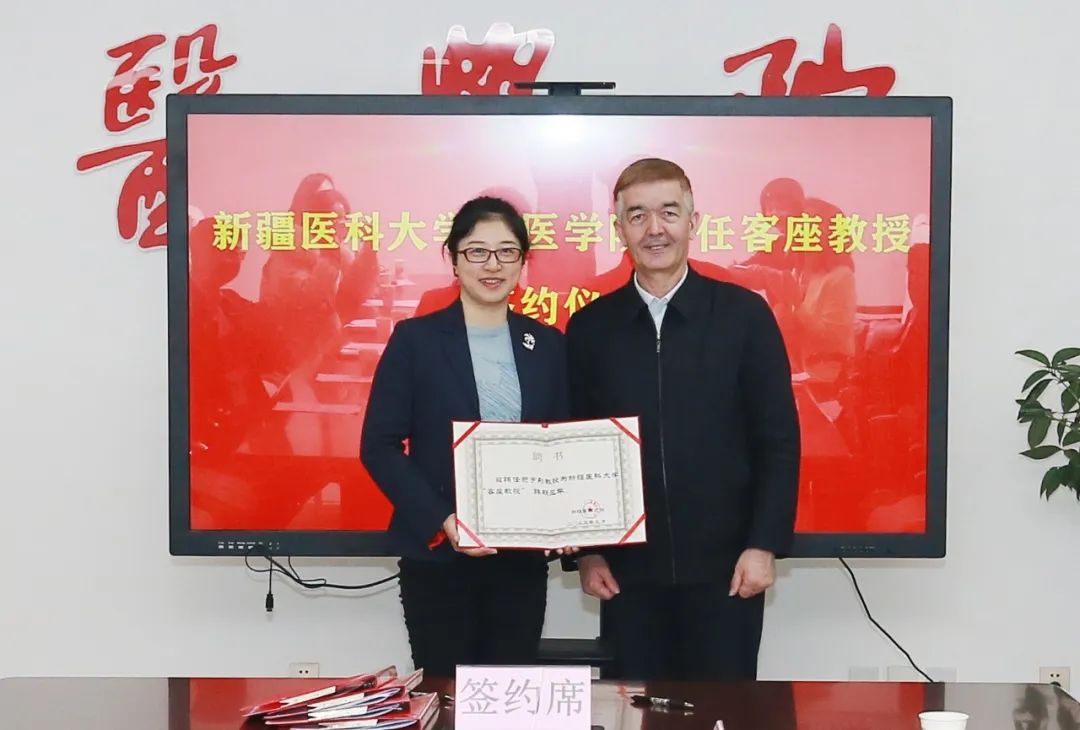 3月31日下午,beat365在线唯一官网中医药楼里气氛热烈,校党委副书记、校长阿吉艾克拜尔·艾萨为北京中医药大学的费宇彤教授和北京大学的孙凤副教授颁发了beat365客座教授聘书。