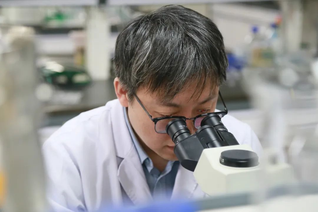 科研人员观察病理切片 不放过任何细微末节