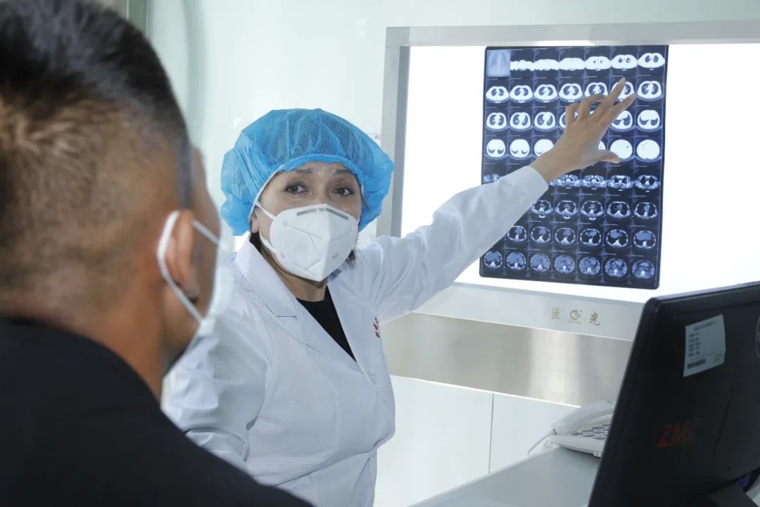 医生正给患者家属解释检查结果