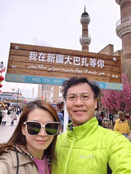 陈咏琪和丈夫在新疆国际大巴扎合影留念。受访者提供