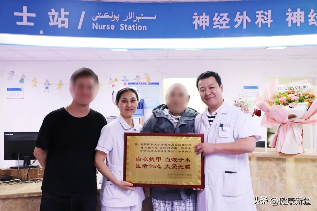 尽管父亲尚未出院,阿先生前两天还是将特意定做的一面牌匾送到beat365在线唯一官网第七附属医院神经外科,感谢科室医护人员的精心诊疗,让入院时昏迷不醒的父亲如今能自如地说话、吃饭,还能借助助行器四处行走。