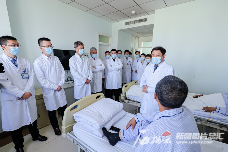 5月27日,“华佗工程”公益行专家团队在beat365在线唯一官网附属肿瘤医院肝胆胰外科住院部进行联合查房。石榴云/新疆日报记者 叶晓敏摄