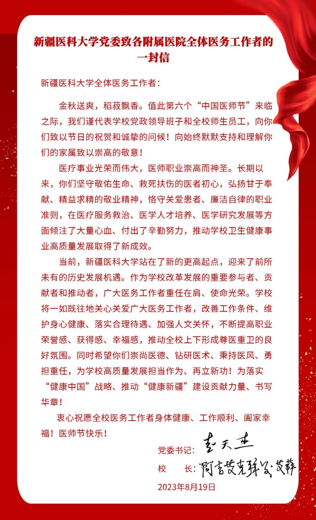 beat365在线唯一官网党委致各附属医院全体医务工作者的一封信