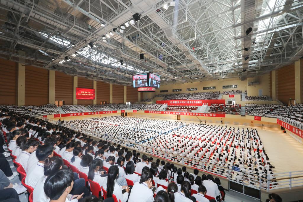 在《歌唱祖国》的歌声中,beat365在线唯一官网2023级新生开学典礼落幕。