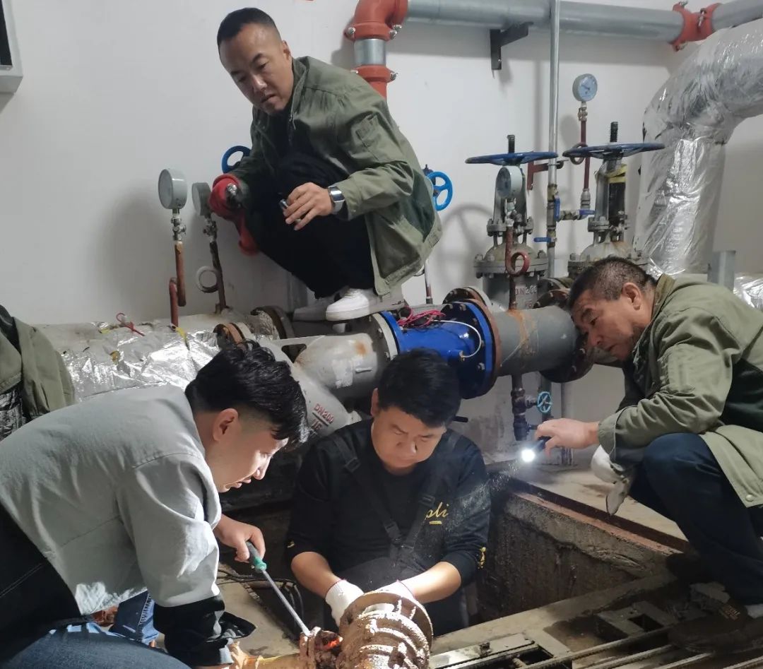 后勤处公共设备科工作人员正在对排污泵进行维护。