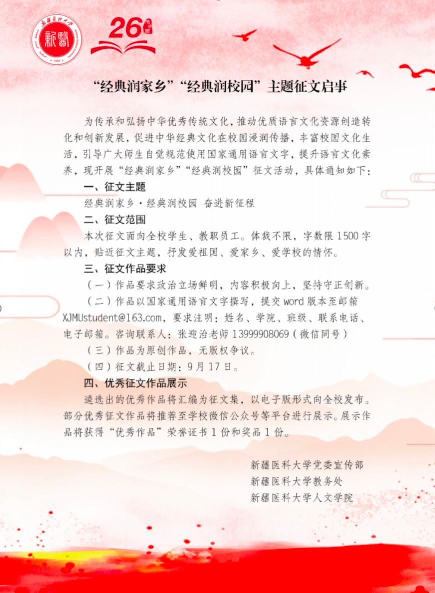 开展“经典润家乡 经典润校园”主题征文
