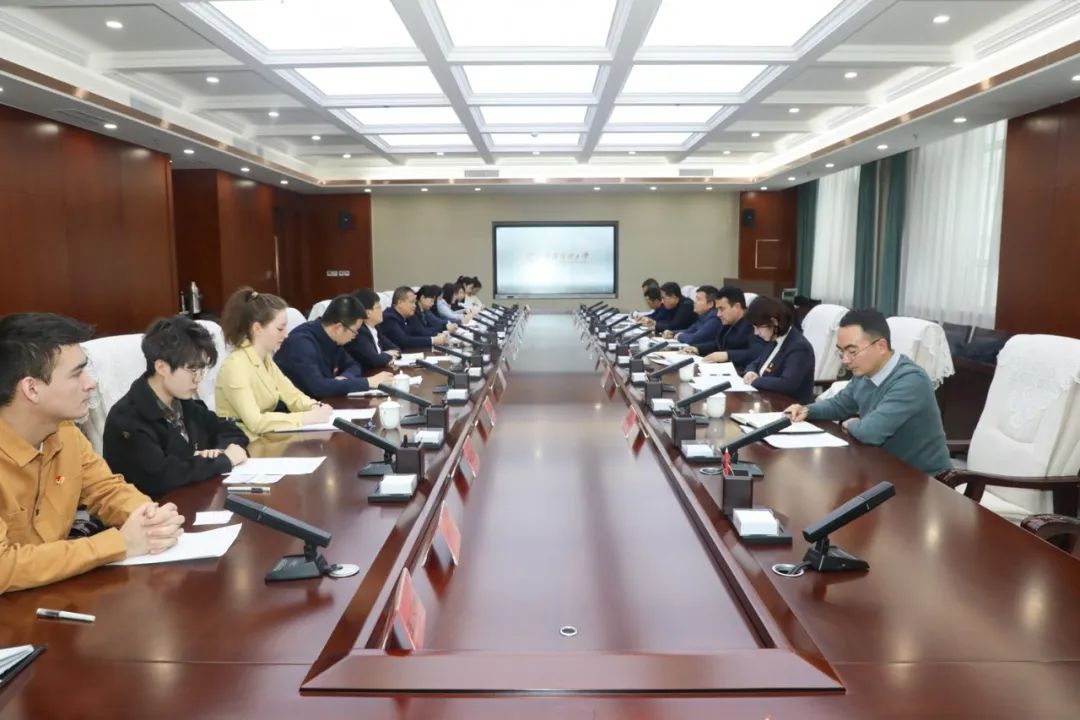 12月12日下午,自治区团委书记艾山江·艾塔洪一行来到beat365在线唯一官网,就beat365团员和青年开展学习贯彻习近平新时代中国特色社会主义思想主题教育情况进行调研,与校党委书记赵天杰举行座谈。