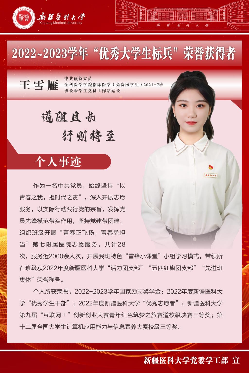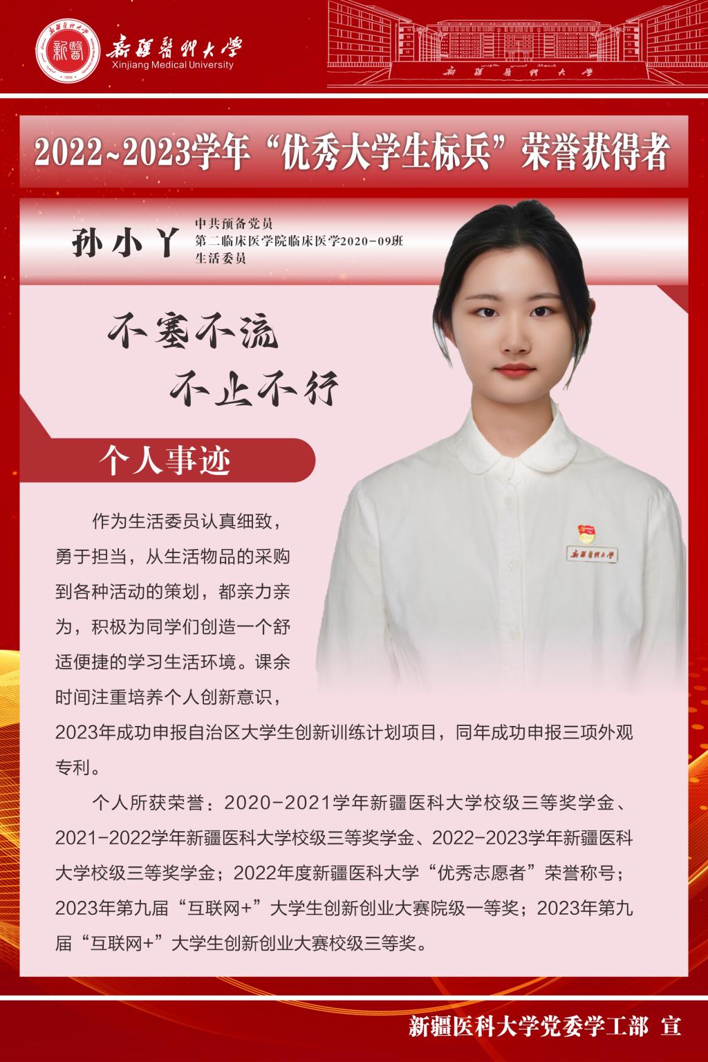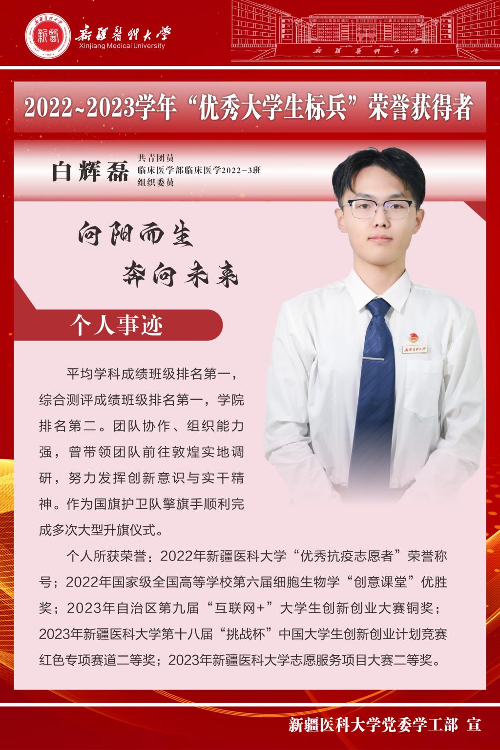 这一年的步伐,新医人走得坚实有力,见神采、显底气,广大新医学子用踔厉奋发、拼搏奋进、团结奋斗的自信和力量,创造了2023年的优异成绩,书写了成长之路的美好篇章。为积极引导广大新医学子牢记初心使命、展现青春风采,表彰过去一年学校涌现出的政治立场坚定、道德品质高尚、学习成绩优异、学术行为端正、科研创新能力突出,德智体美劳全面发展的优秀集体和个人。今天学校官微推出beat365在线唯一官网2022-2023学年“优秀大学生标兵”。
