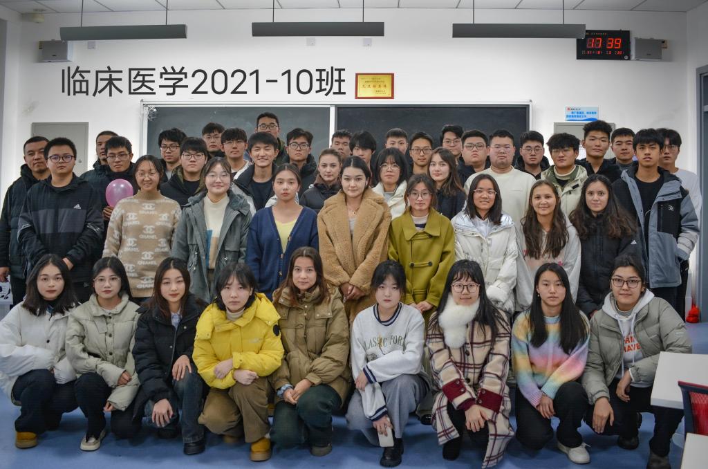 临床医学专业2021-10班,共有57名同学,是一支具有向心力、战斗力的班级队伍。全班同学秉承着“好学,力行,笃医,创新”的校训,不断追求卓越,荣获“活力团支部”“优秀团支部”等荣誉。2022、2023年度平均学科成绩以及综合测评成绩均位列年级前茅。英语四级通过率达80.7%。13名同学获得各类奖学金,积极参与和开展校园文化活动。先后获得“卫生模范班级”、“心理剧大赛三等奖”等多项集体奖项。