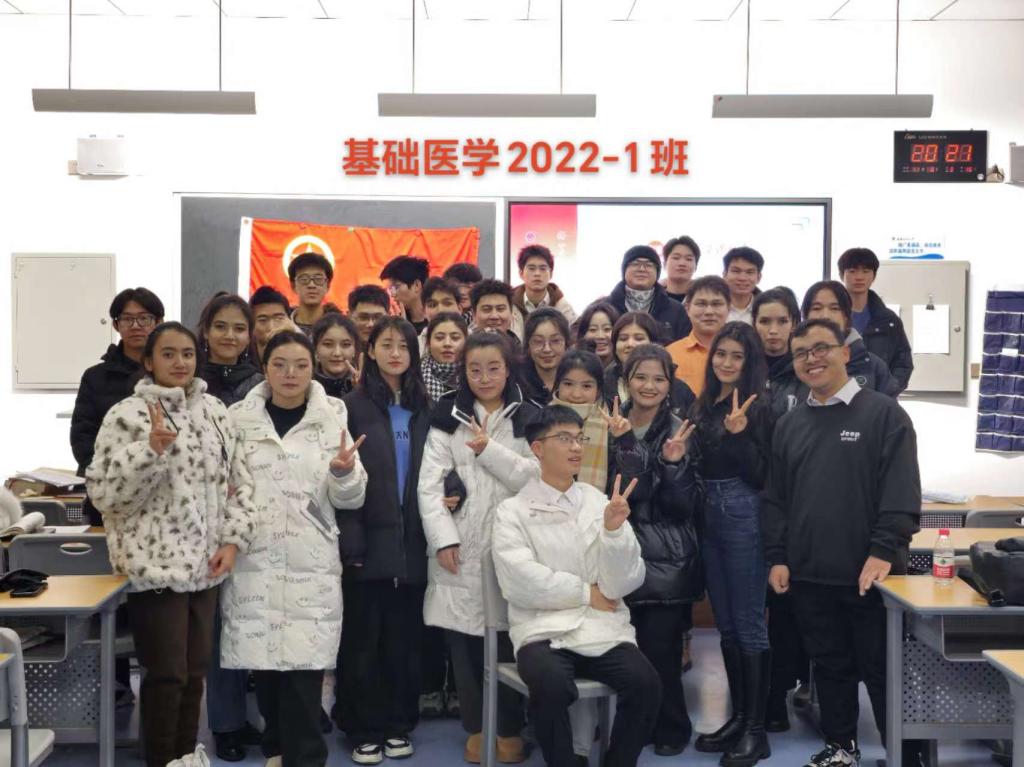 临床医学专业(免费医学生)2022-4班,共有57名同学,入党积极分子3名,共青团员33名。这是一个民族团结大家庭,同学之间团结互助,勤奋好学,班风良好,56人全部递交了入党申请书。班级成立了学习小组,一学年共开展40余次小组学习,以强带弱,形成好学、刻苦、严谨的学风。2022-2023学年全班平均学习成绩居年级第一。班级全体同学将继续脚踏实地,以青春之名,唱响青春之歌,在建设新疆基层卫生健康事业中绽放绚丽的青春之花。