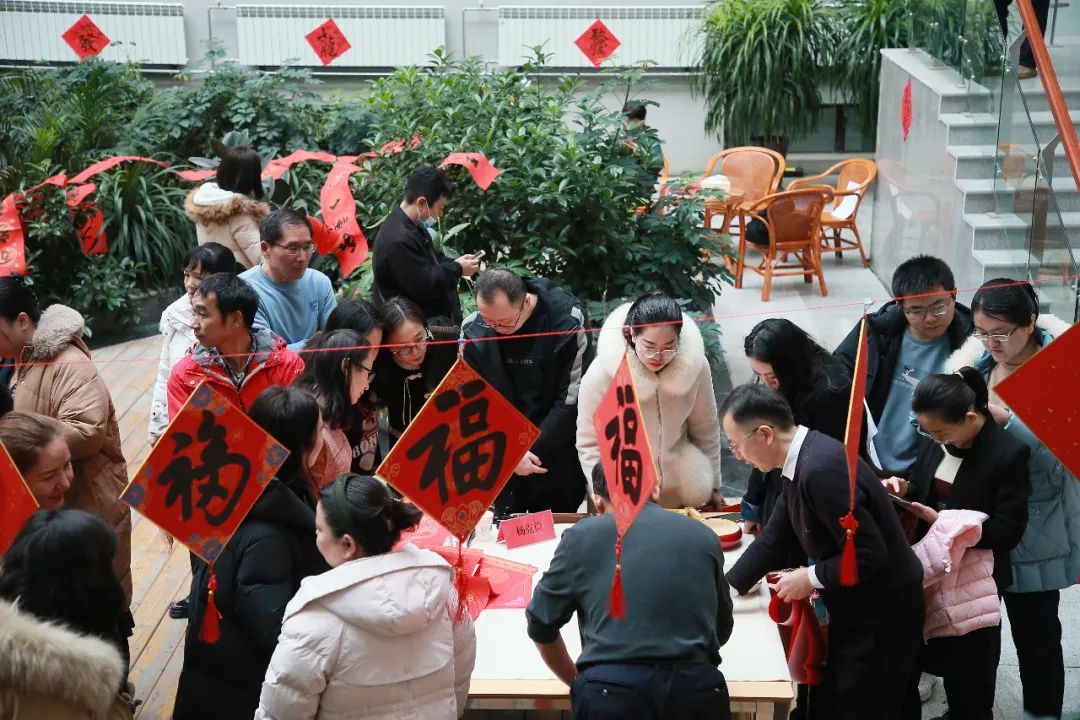知名书法家李学文、杨克俭、蔺学雄 、高洪泉、吴发林、杨小仟、杜建军等为教职工们现场写春联、送福字