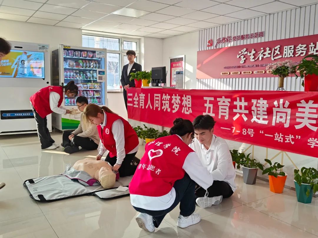 护理学院志愿者服务分队进行了现场应急救护的演练展示,专业、高效的急救操作展示,帮助同学们提高应对突发事件的能力,增强对“人人学急救、急救为人人”的安全意识。