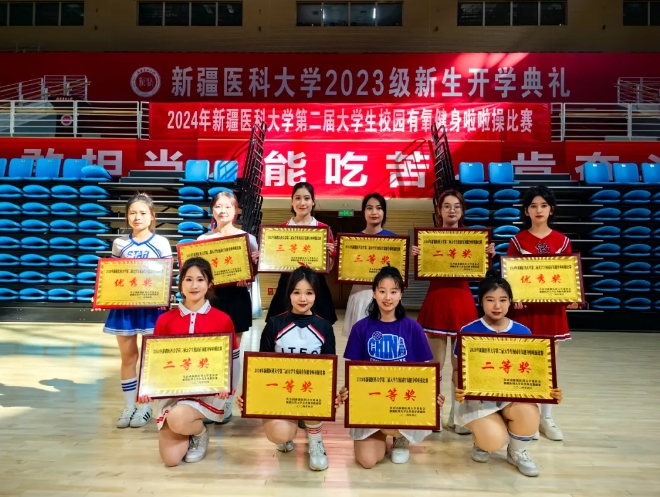 祝贺获奖的各支代表队,希望此次健身啦啦操比赛的举办,能让同学们对啦啦操和健美操项目有更多了解,加强体育锻炼、享受体育的乐趣,增强体质、健全人格、锤炼意志,展现新医学子朝气蓬勃的精神风貌,做全面发展的医学生。
