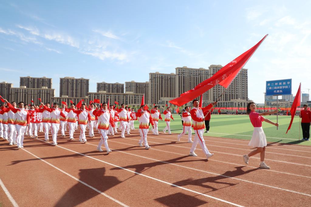 希望各位运动员充分发扬“更高、更快、更强”的体育精神,迎难而上、奋勇拼搏、挑战极限,赛出竞技水平、赛出个性风采、赛出新医人团结奋进的新时代面貌。
