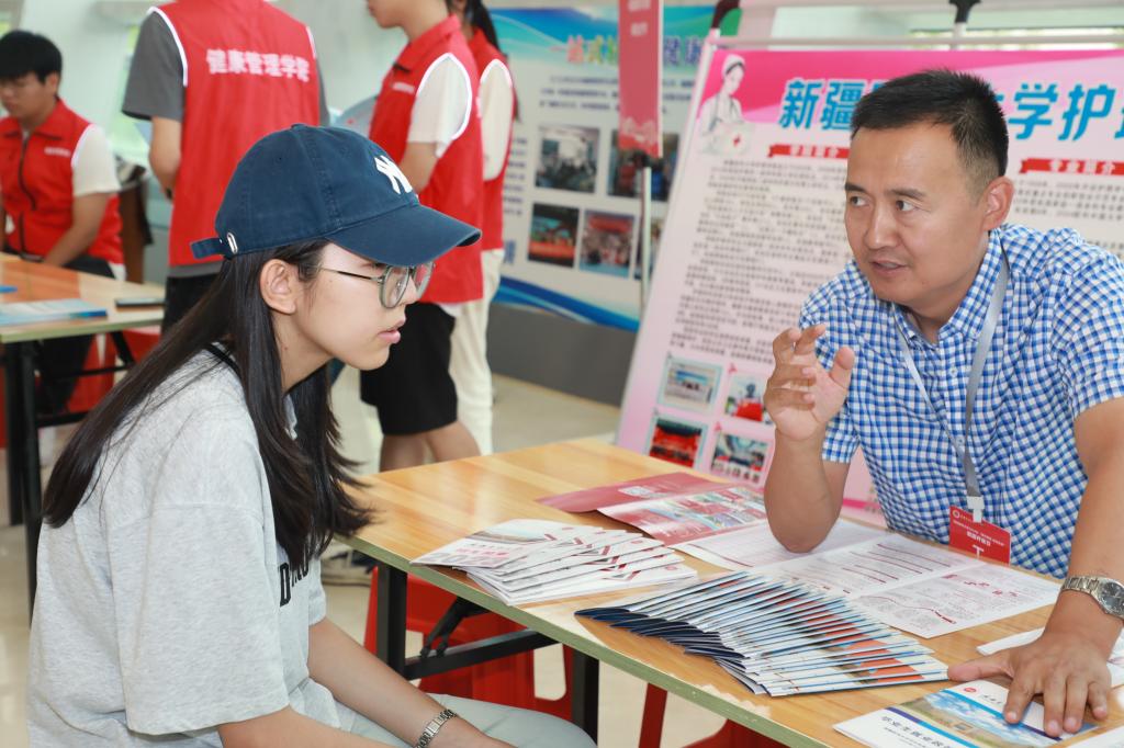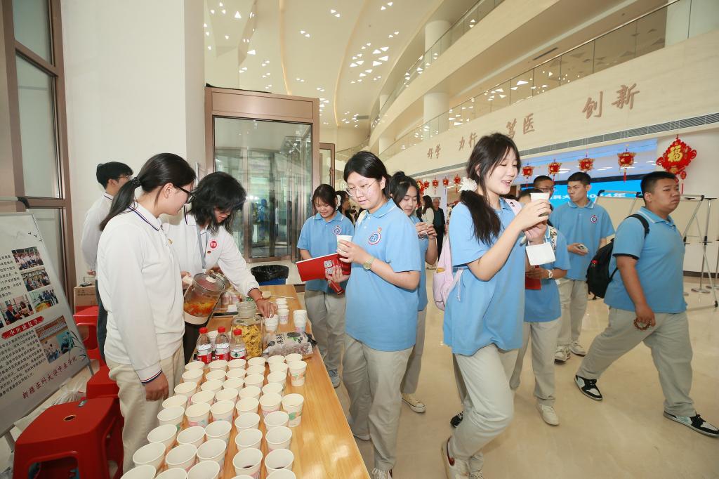 来自新疆师范大学附属中学、乌鲁木齐市第七十中学、乌鲁木齐市第四十一中学、乌鲁木齐市南湖中学、乌鲁木齐市第三十一中学、乌鲁木齐市第三中学等学校的高中生,和来自全疆各地的学生及家长共1000余人,走进了图书馆、科普教育基地、校史专题展览厅、餐厅、宿舍等地实地参观,了解新医的办学条件、软硬件设施,体验现代医学和中医药文化的博大精深,收获对生命的敬畏、对健康的珍惜!