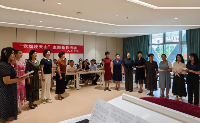 学生代表用富有感染力的声音,深情朗诵了《党的赞歌》,激励全体师生在党的领导下,不断奋进、踔厉奋发,为实现中华民族伟大复兴的中国梦贡献力量。学生党员代表面对党旗重温入党誓词。大家表示,要以更加饱满的热情和昂扬的斗志,投入到学习和工作中去,为推动新疆医药卫生事业发展作出更大的贡献。