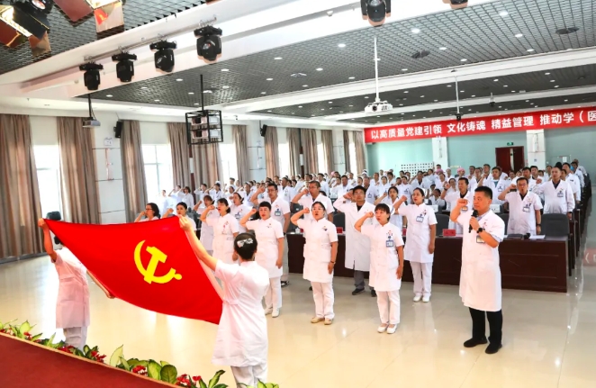 活动中,全体预备党员进行入党宣誓,正式党员重温入党誓词。大家高举右拳,庄严宣誓,以实际行动践行“敬佑生命、救死扶伤、甘于奉献、大爱无疆”的职业精神,全心全意服务于人民健康事业。
