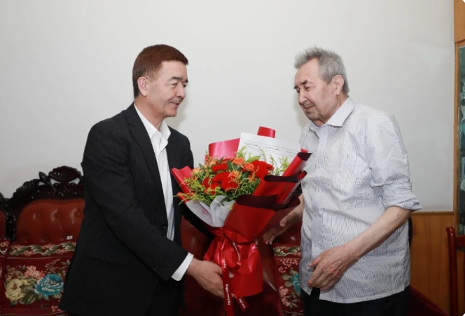 在中国共产党成立103周年之际,校党委书记赵天杰,校党委副书记、校长阿吉艾克拜尔·艾萨等校党委领导班子成员走访慰问了孟南华、殷耀良、王海江、徐占英、艾沙·若孜、霍新慧、季复海、支华庆、粟迎春、张秀清、于湘友、希尔艾力·吐尔逊、毛新民、刘兴国、卢雪玲、徐卫东、高文彪、高晓黎、张同法、邹兵、邵英梅、夏爱玲、方锐、新华·那比、武毅、杨建中、颜萍、梁玉芳、马合帕丽·哈木扎、李雪莲、钱崇文、刘鸿秋、徐芳、朱中浩、文智、古扎丽努尔·阿不力孜等全国和自治区优秀共产党员、老党员、老干部、生活困难党员36名,委托离退休管理服务中心看望慰问退休老党员老干部87名,并向党龄50年的共产党员颁发“光荣在党50年”纪念章,感谢他们为党和人民事业作出的贡献,向他们致以亲切问候和崇高敬意。