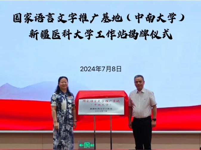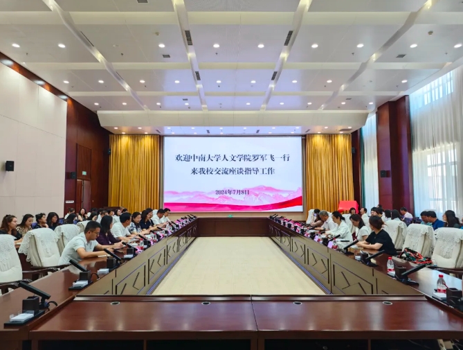 7月8日,中南大学人文学院党委书记罗军飞一行来到beat365交流座谈,并举行国家语言文字推广基地(中南大学)beat365在线唯一官网工作站揭牌仪式,副校长刘涛出席座谈会,校党委常委、宣传部部长林素兰主持会议。