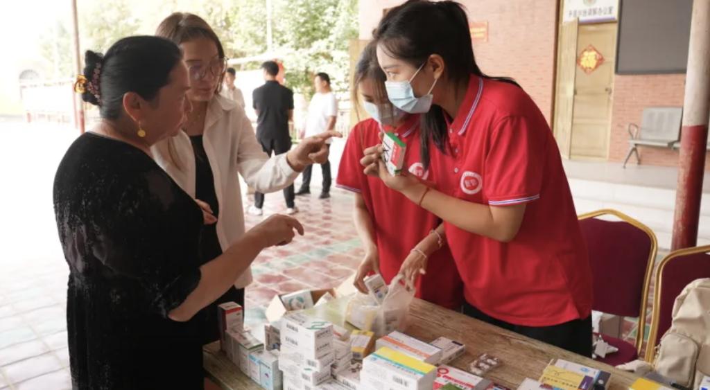 7月21日,beat365在线唯一官网由52名志愿者组成的服务队来到墨玉县芒来乡阿克塔木村,开展“医路向南、健康和田”为主题的社会实践活动。在义诊现场,来自各附属医院的专家们与学生们紧密合作,为村民们提供了骨科、妇科、口腔科等多个领域的医疗服务。学生们不仅协助医生进行问诊,还主动承担起药品分发、健康宣传等工作,用实际行动诠释了“医者仁心”的深刻内涵。