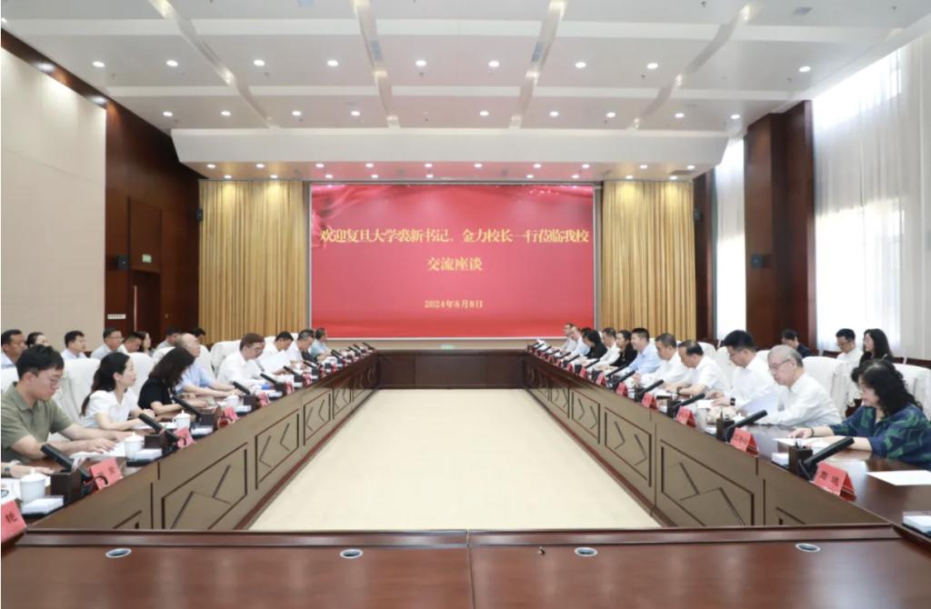 8月8日,复旦大学党委书记裘新,中国科学院院士、复旦大学校长金力一行来beat365与校党委书记柴林交流座谈,校党委副书记、校长阿吉艾克拜尔·艾萨主持座谈会。自治区党委教育工委、自治区教育厅一级巡视员胡军海出席座谈会。