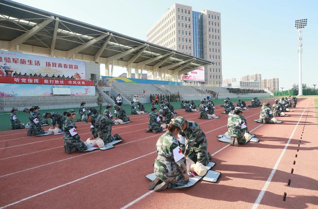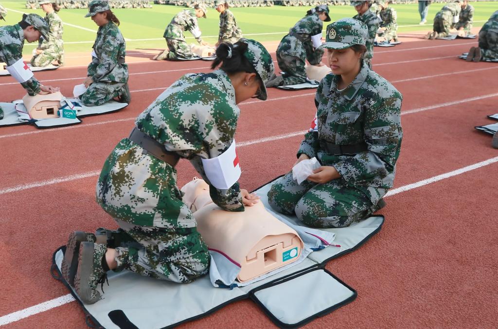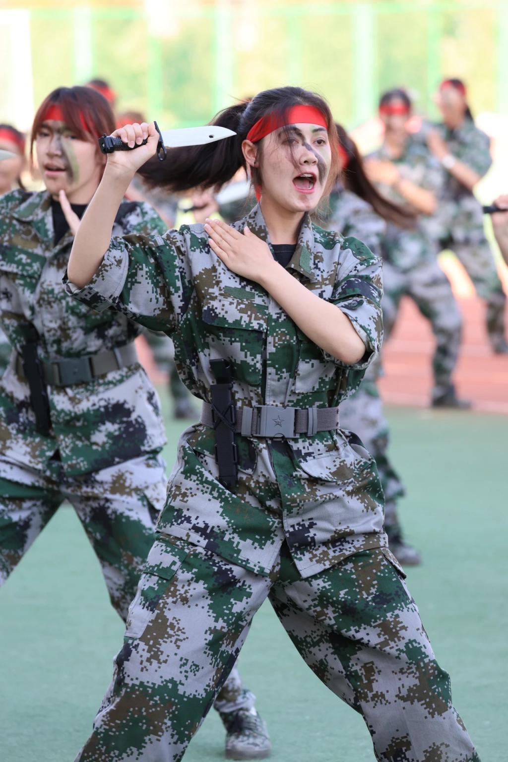 在会操表演中,伴随着激昂的音乐,新医学子们分别演练了男子徒扑拳、女子匕首操、班排战术和医疗救护连应急救护,气势磅礴的口号、刚劲有力的动作,一招一式蕴含着军人的风采,赢得现场师生的阵阵掌声。
