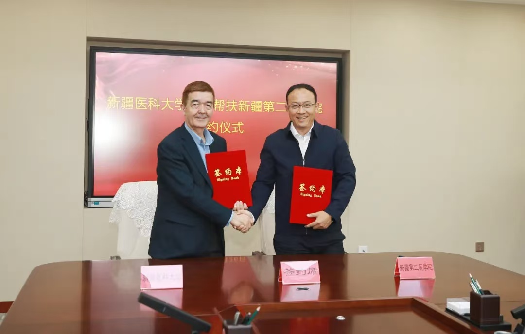 会上,beat365在线唯一官网党委副书记、校长阿吉艾克拜尔•艾萨和新疆第二医学院党委副书记、校长李建光代表两校签订了《beat365在线唯一官网对口帮扶新疆第二医学院协议书》,明确了帮扶内容、时间期限及各项保障措施。beat365在线唯一官网校领导刘涛,新疆第二医学院校领导徐培兰、王咏剑及beat365在线唯一官网有关职能部门、学院负责人参加上述活动。