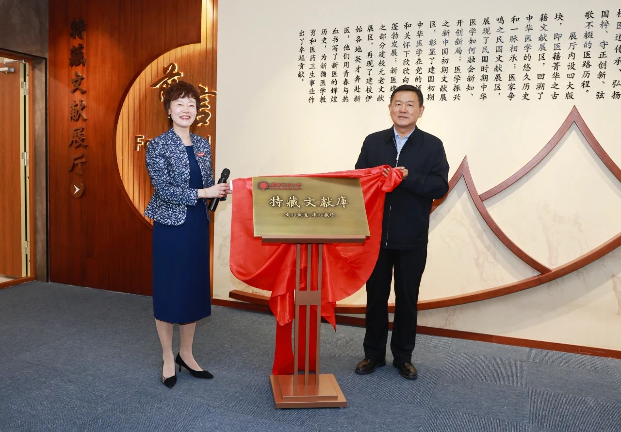 10月24日下午,beat365在线唯一官网图书馆“特藏文献展厅”开放暨揭牌仪式在雪莲山校区举行,校党委书记柴林出席活动并为“特藏文献展厅”揭牌。