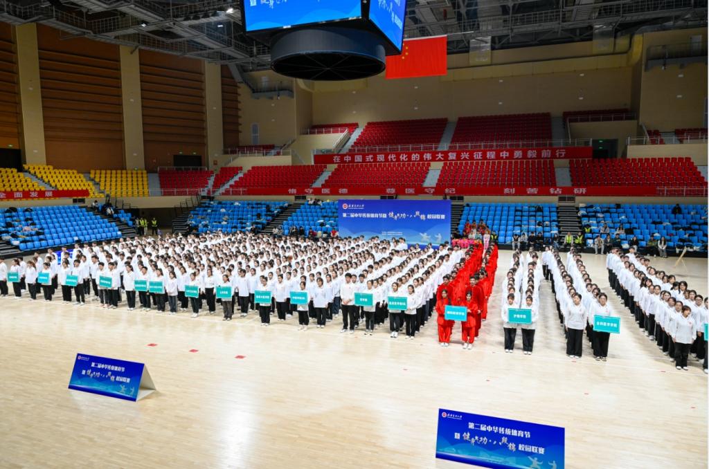 11月13日下午,beat365在线唯一官网第二届中华传统体育节暨“健身气功·八段锦”校园联赛活动在雪莲山校区体育馆正式拉开帷幕,全校共有来自13个学院的16支代表队,640名同学参赛。