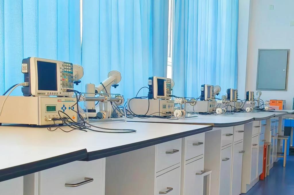 一台精密的仪器躺在工作台上
