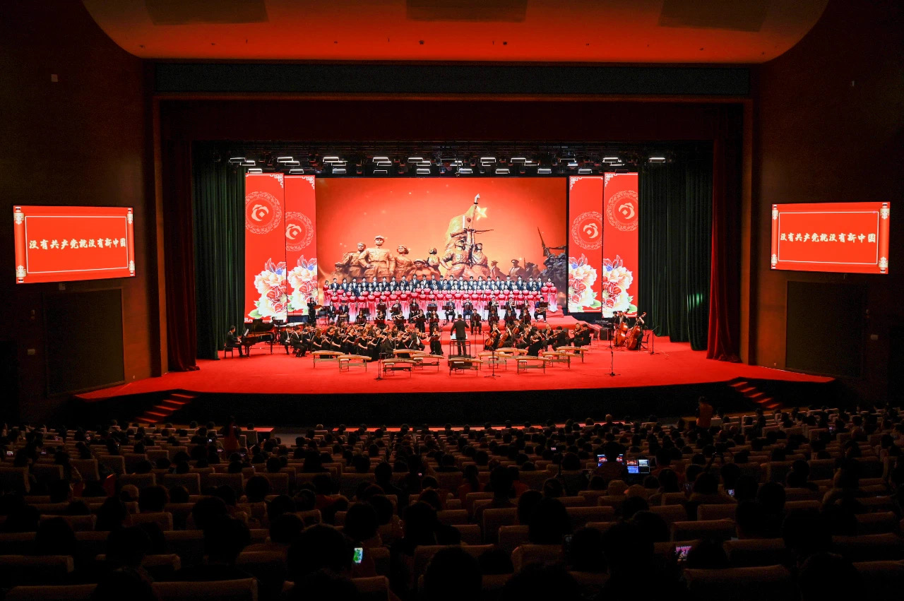 音乐会在管弦配乐合唱《没有共产党就没有新中国》中拉开帷幕。一百年来,中国共产党领导中国人民不懈奋斗、不断进取,成功开辟了实现中华民族伟大复兴的正确道路。只有中国共产党能担负起实现中华民族伟大复兴的历史使命,实现中华民族伟大复兴是贯穿我们党百年奋斗历程的主题。