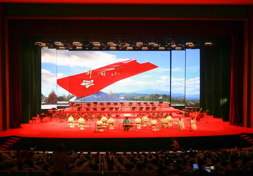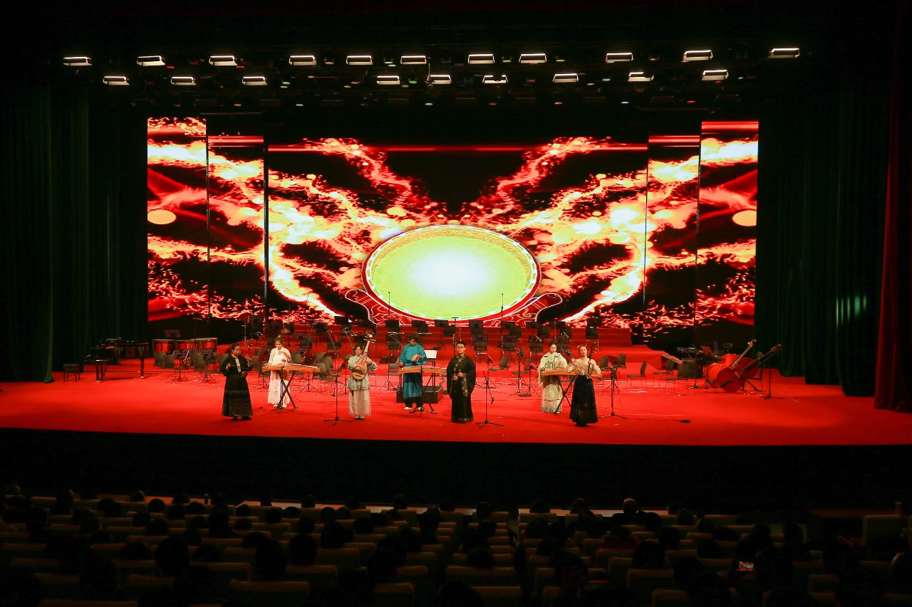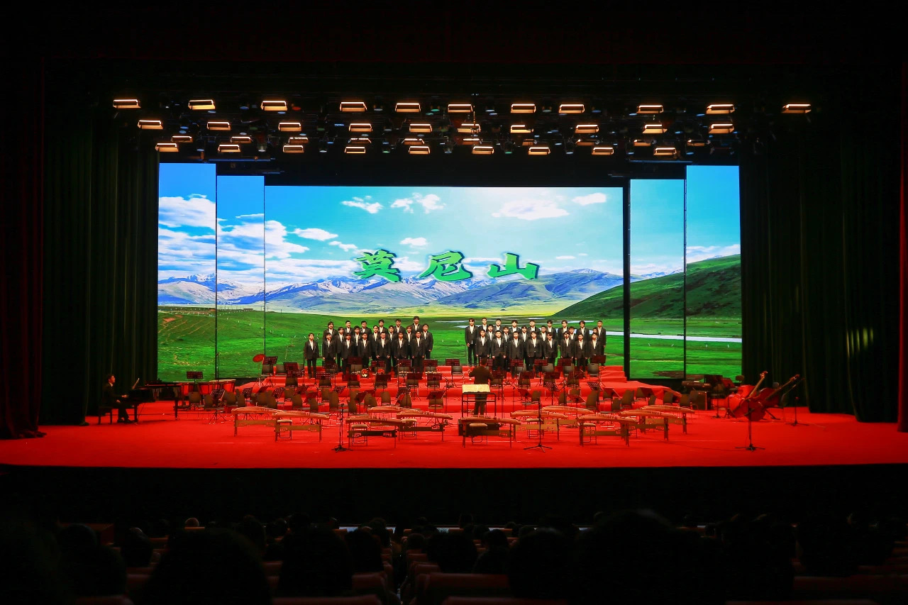 民乐合奏《赛马》《象王行》以其磅礴的气势、热烈的气息、奔放的旋律震撼全场。音乐在群马的嘶鸣声中展开,旋律粗犷奔放。由远到近清脆而富有弹性的跳弓,强弱分明的颤音,描绘了赛马盛况的情形。一曲传统与激情的交响碰撞,让听众仿佛置身于策马奔腾的现场。