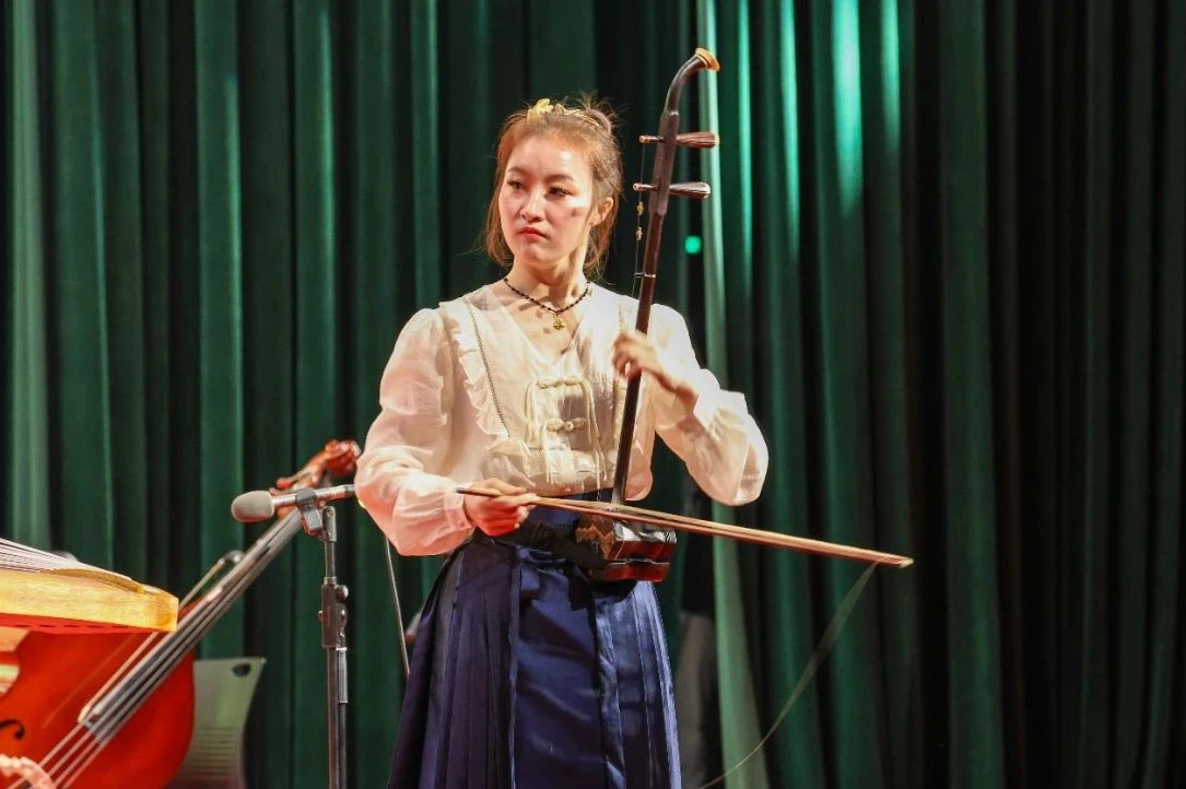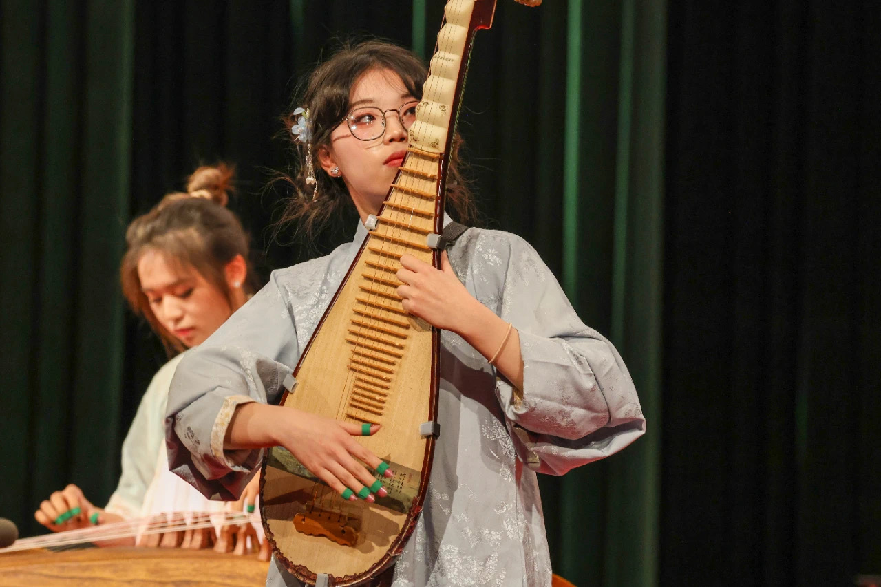 数千年的传统民乐文化孕育滋养了一代代中国人,当古典音乐流泻而出的一刹那,高山、流水、丝竹、冬雪的旋律和谐奏响,《喜洋洋》《大中国》的民乐合奏带领着观众跨越时空,传递出那份说不出、道不尽的感动,展示着中国古典器乐绕梁三日之美,一点点浸润了新医师生的心灵。