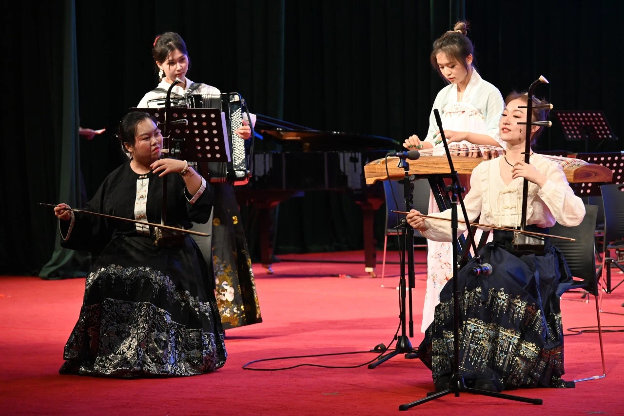 音乐会以铸牢中华民族共同体意识为主线,深入学习贯彻习近平文化思想,坚持以美育人、以美化人、以美培元、以美塑心,以美育浸润师生心灵,传承中华优秀传统文化,为新医师生带来了一场精彩的文化艺术品鉴晚会!