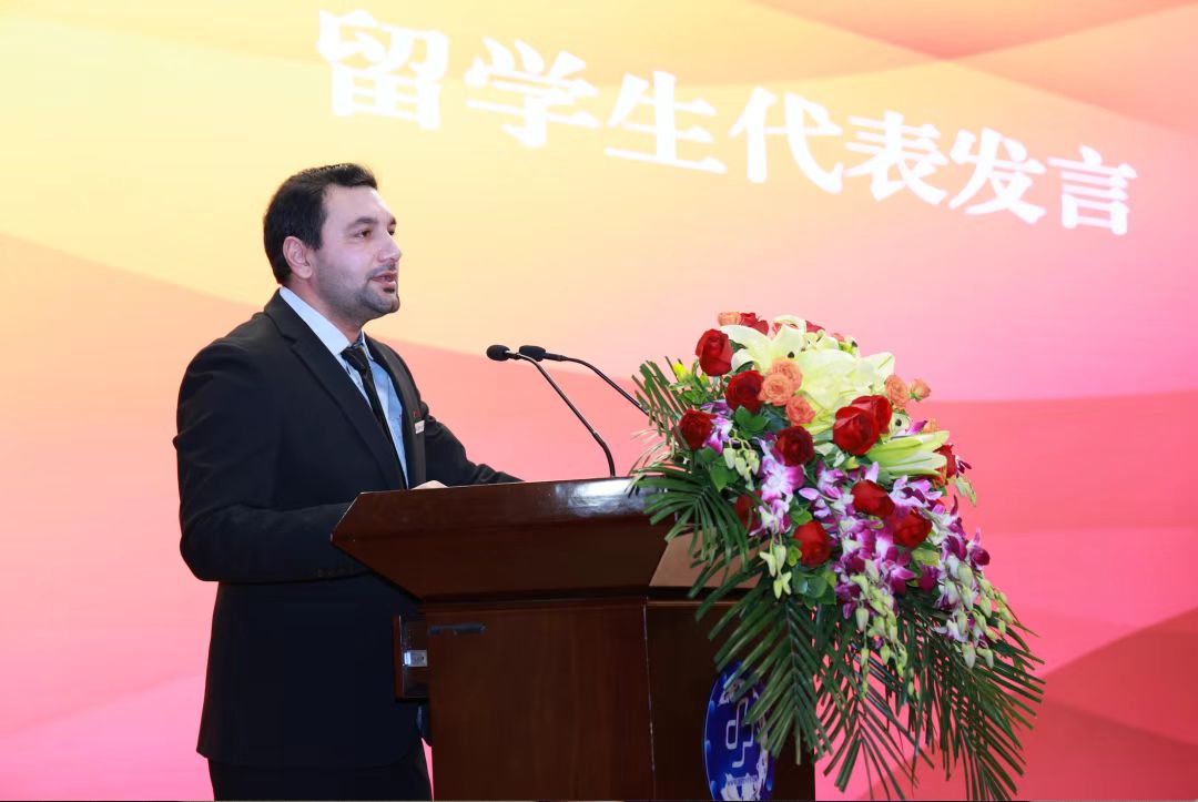 来自巴基斯坦的2024级博士生纳吉布·乌拉和来自哈萨克斯坦的2024级本科生代表巴合达吾列提·阿依努尔作新生代表发言。