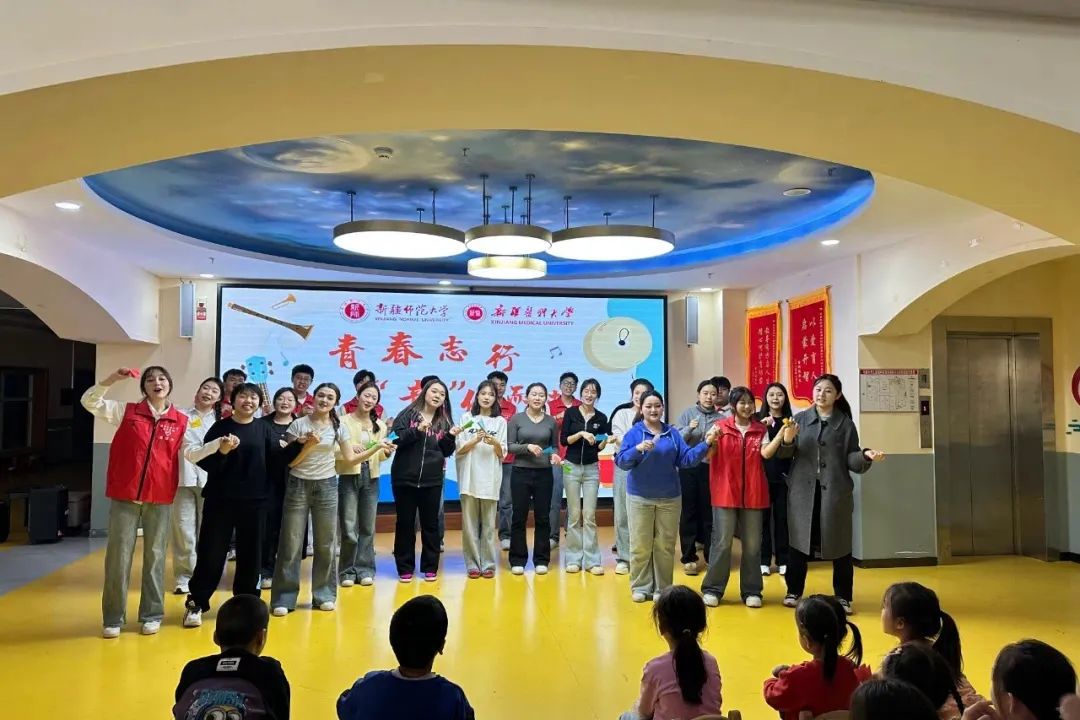 儿科学院联合新疆师范大学音乐学院共赴乌鲁木齐市儿童福利院开展“青春志行·‘音’你而来”联合公益汇演活动。通过传统与现代舞蹈相融、古典与现代乐器合奏、舞狮与互动游戏等多种形式,为福利院的孩子们带来了一场精彩纷呈的“青春欢乐颂”。