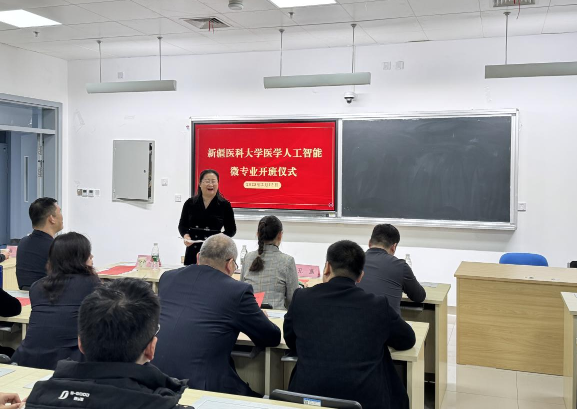 beat365在线唯一官网副校长刘涛在开班仪式上致辞,表示医学人工智能作为医学与人工智能深度融合的新兴领域,正深刻改变着医疗行业。它打破了传统医学的局限,为疾病诊断、治疗手段健康管理等带来革命性突破。医学人工智能微专业的开设是学校顺应“新医科”发展,积极响应医学教育创新需求的重要举措。她结合当前DeepSeek等先进技术,强调人工智能在医学影像分析、辅助诊断、药物研发等领域的突破性应用,提出要通过医学人工智能微专业培养既懂医学又精技术的复合型人才,助力新疆医疗数智化快速发展。