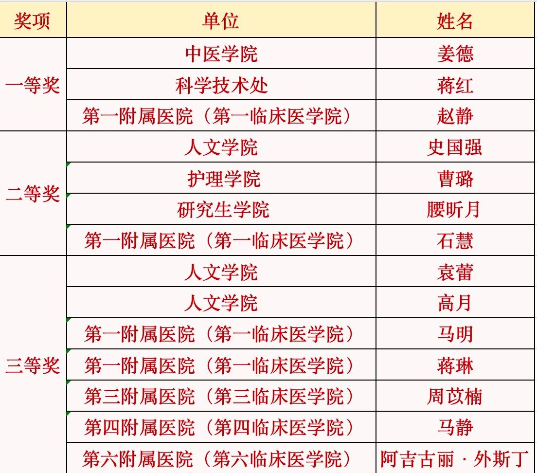 获奖名单