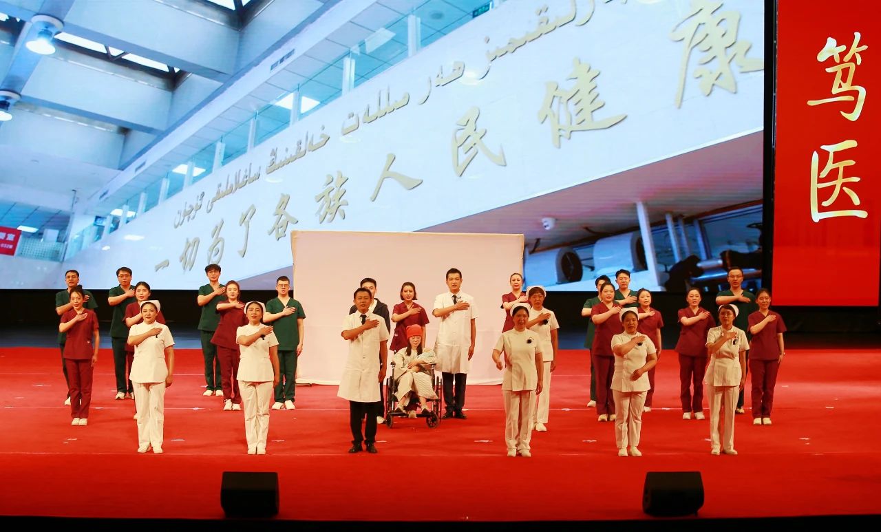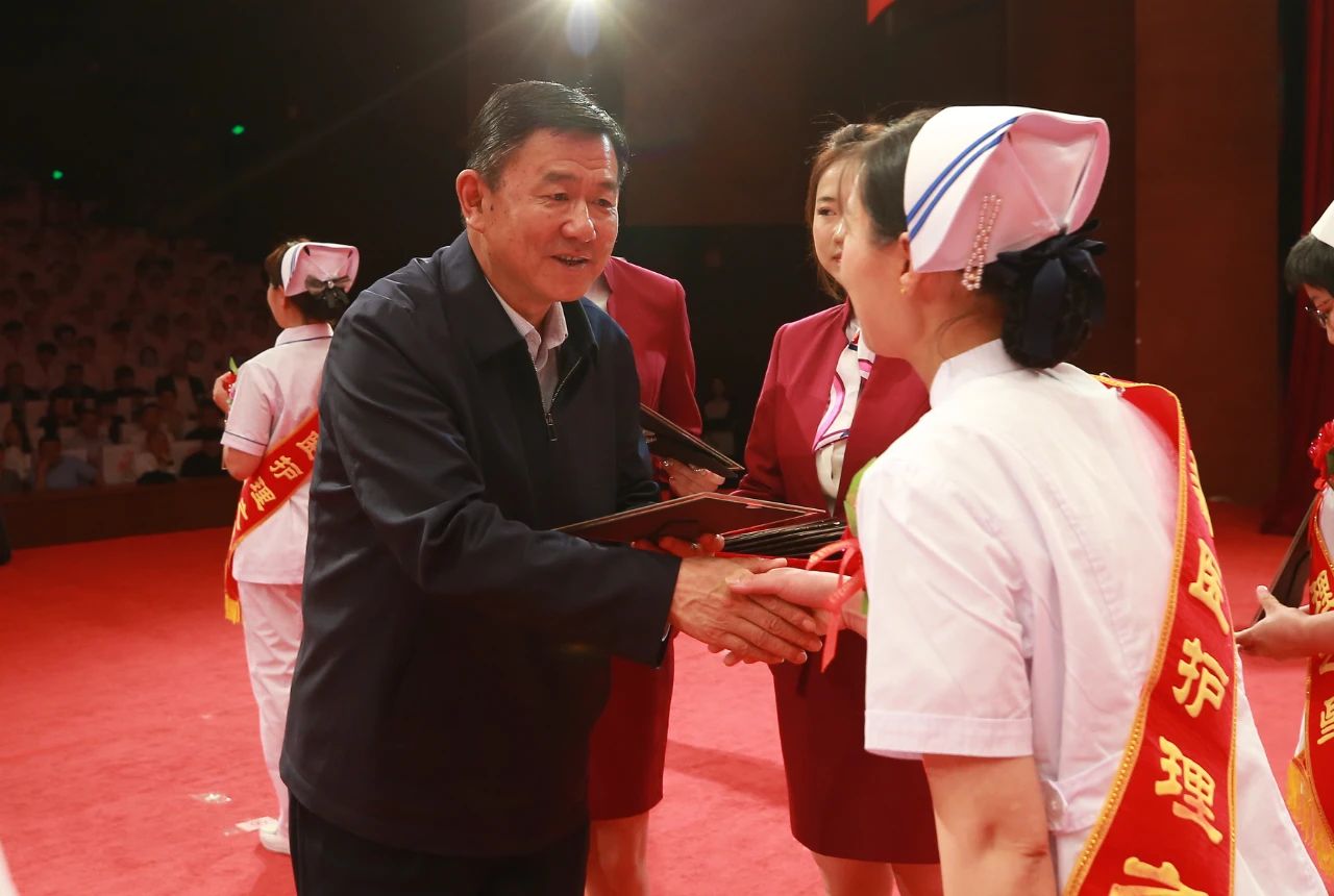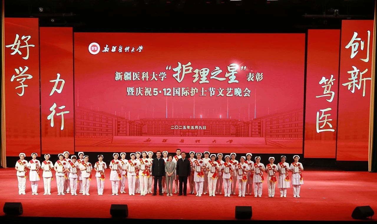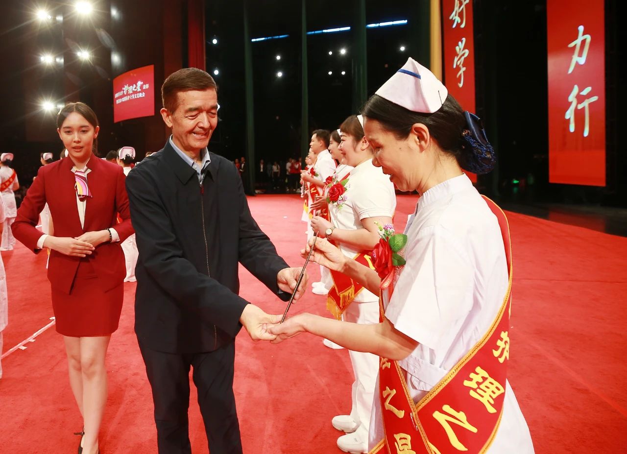 校党委书记柴林,校党委副书记、校长阿吉艾克拜尔·艾萨,第41届国际南丁格尔奖章获得者、新疆护理学会名誉理事长,第一附属医院(第一临床医学院)原护理部主任聂淑娟为获奖者颁发了“新医护理之星”荣誉证书。