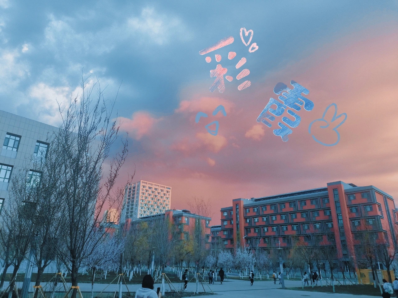 染上霞光的教学楼