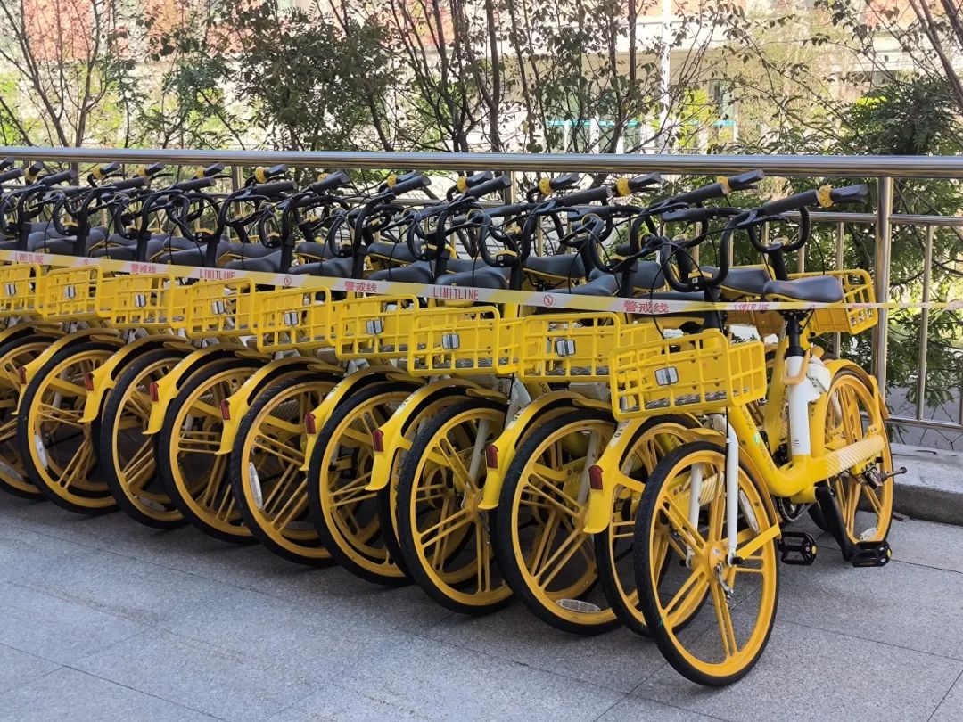校园里出现了整齐排列的黄色单车