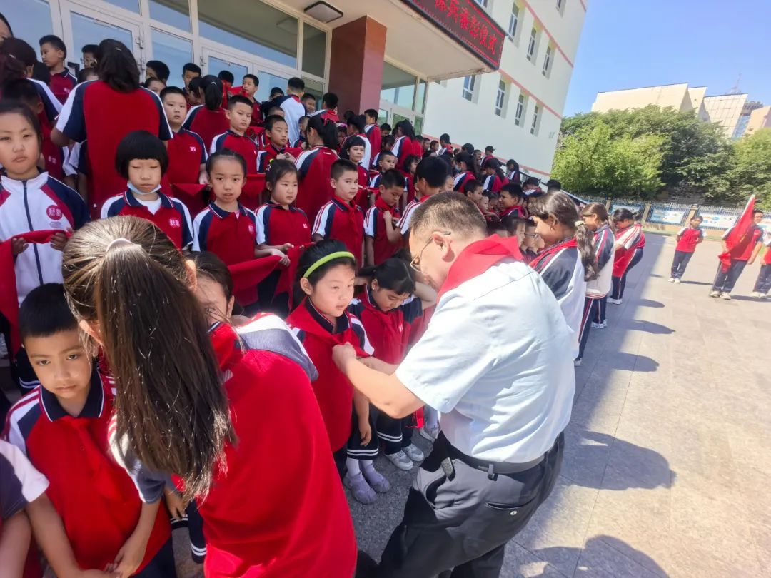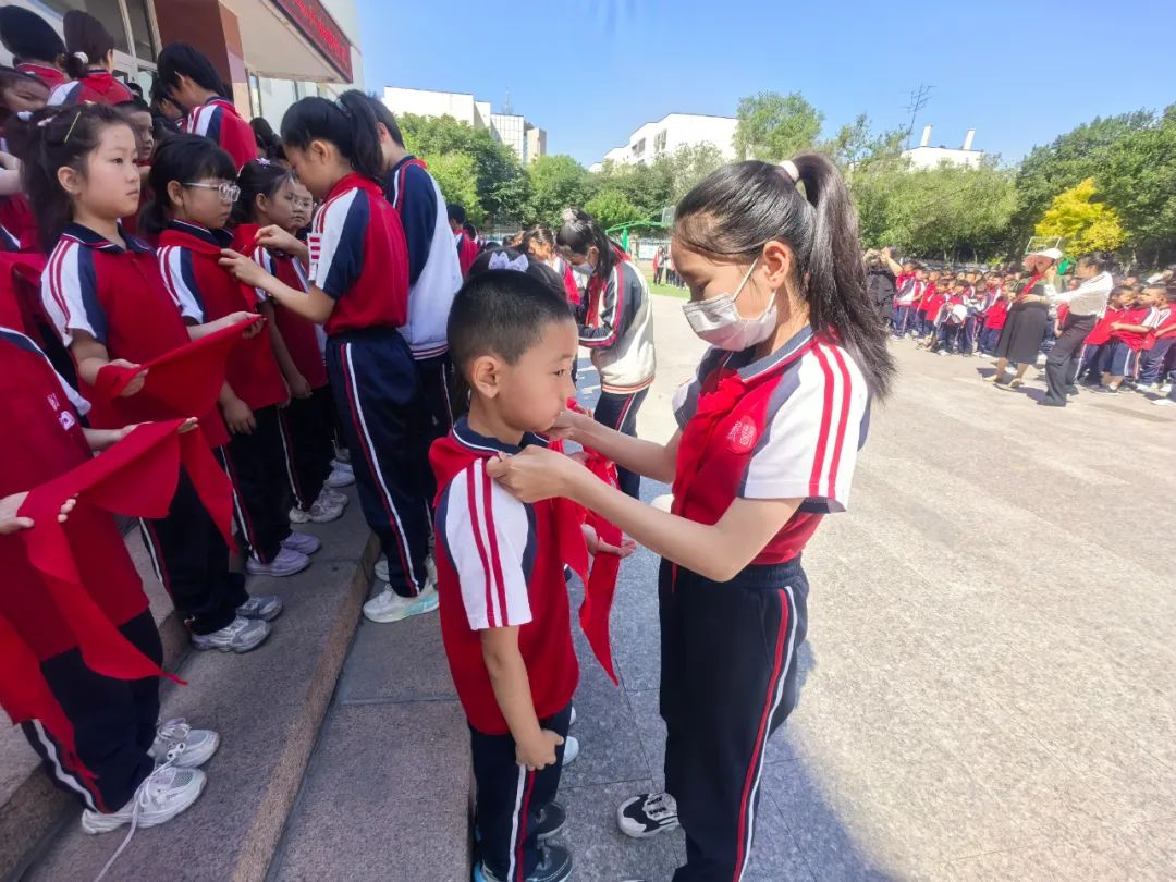 子女学校举行了“童心向党迎六一红色血脉代代传”一、二年级学生入队仪式,156名新队员戴上红领巾,老队员为新队员系红领巾,新队员庄严宣誓。活动激发了少先队员的荣誉感和仪式感,还表彰了40位民族团结小标兵,让孩子提前感受节日氛围,厚植了爱党爱国情怀。
